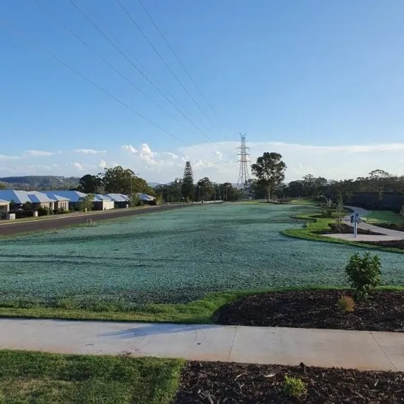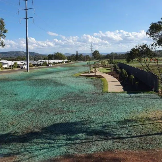 Advantages of hydromulching include the ability to cover large, difficult and inaccessible areas with a covered barrier to keep seed and soil stabilised. Coupled with increased plant survival, faster germination and drought tolerance, the easy application makes hydromulch ideal for a large range of projects including house lawns, golf courses, playing fields, roadside erosion control and even industrial areas such as solar farms.